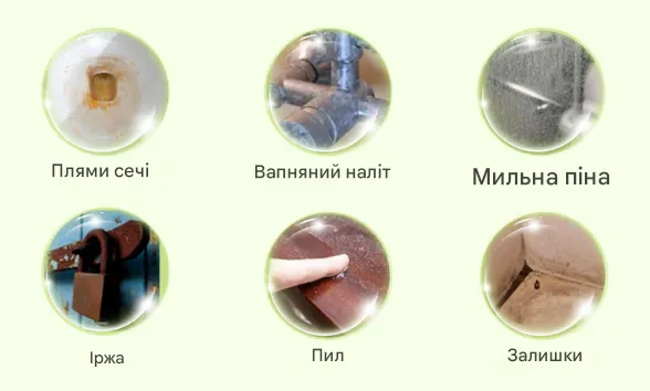 — Виводить жир, плісняву, грибок та бруд, навіть у важкодоступних місцях