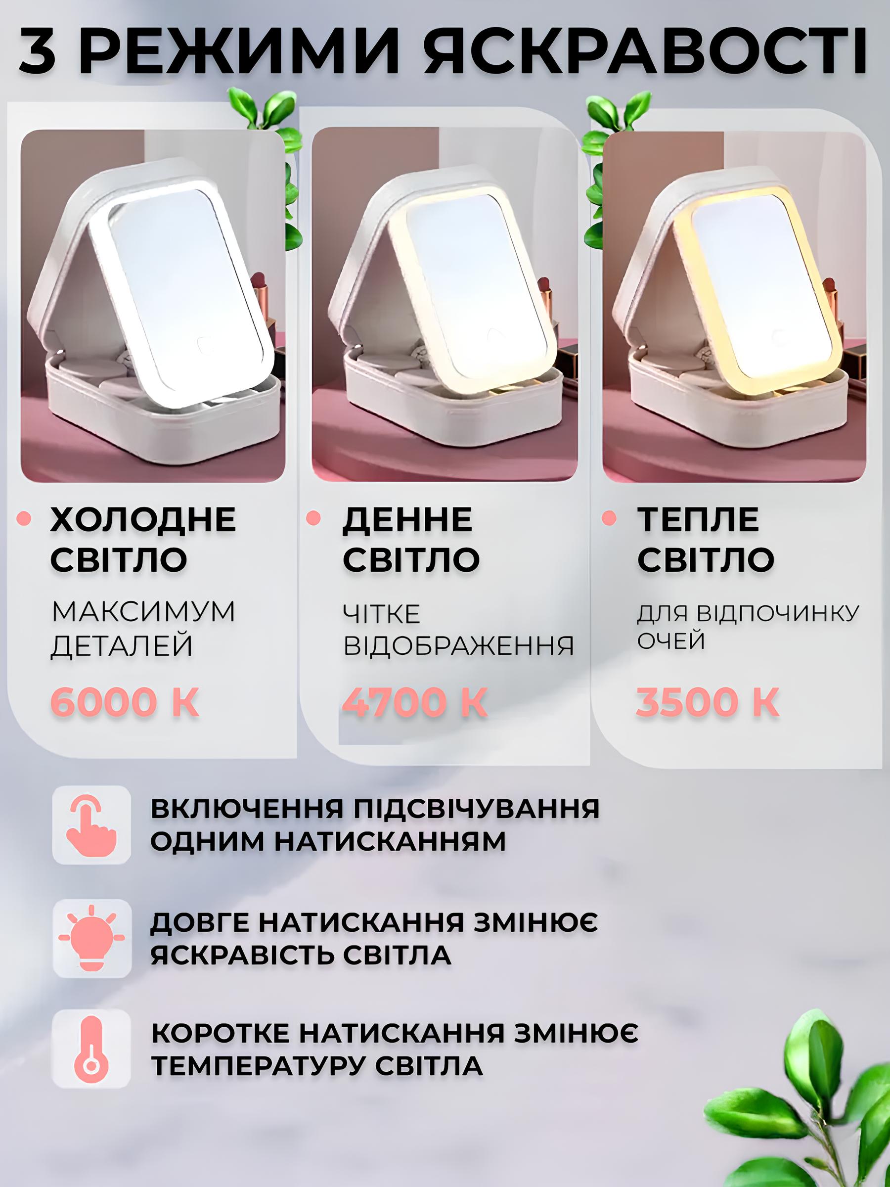 Міні косметичка з дзеркалом і підсвічуванням