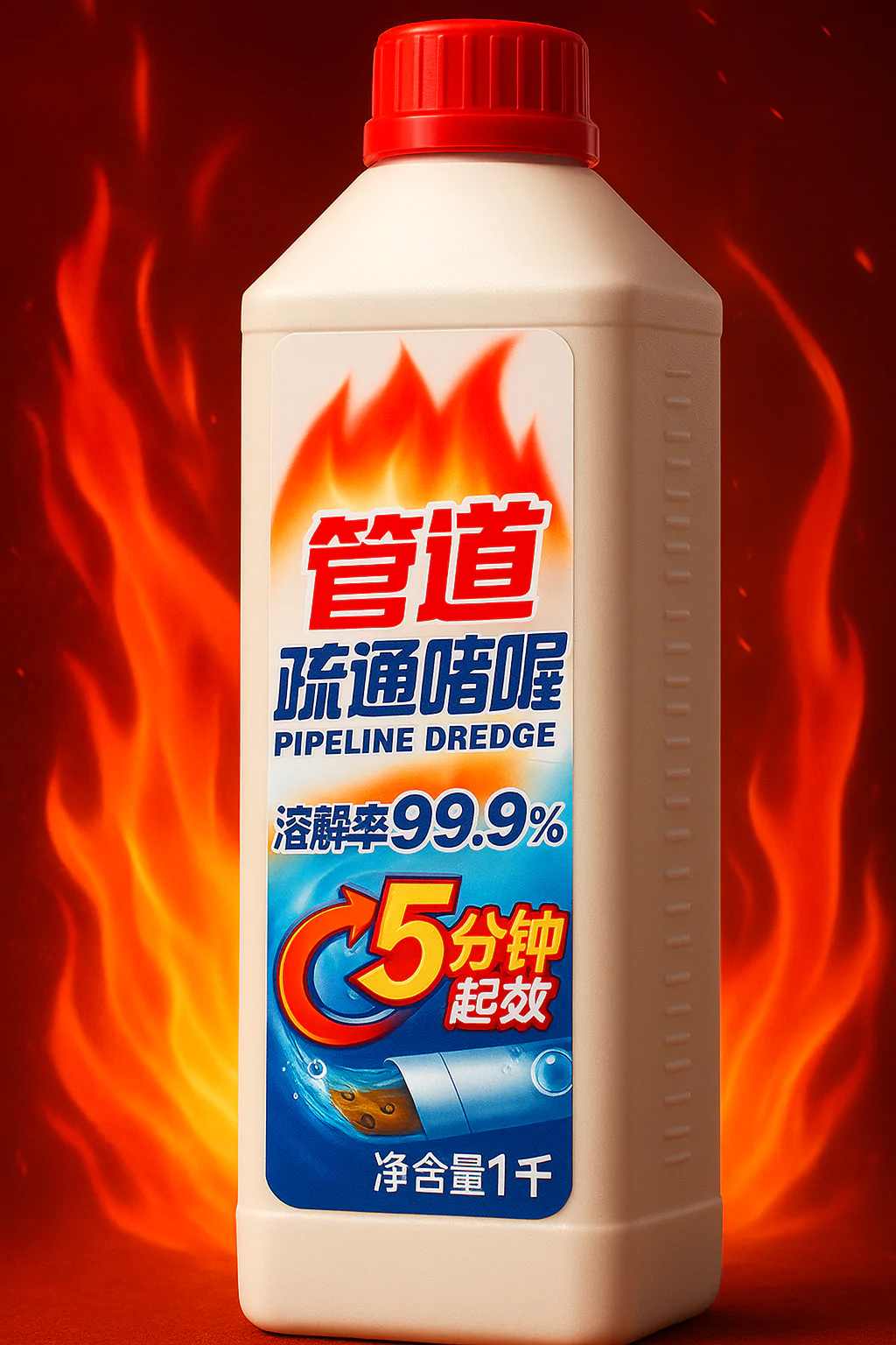 - Склад:Гідроксид натрію (NaOH) – 28% Професійний лужний реагент для миттєвого розкладання жиру, волосся та органічних засмічень. Гідроксид калію (KOH) – 9% Підсилює дію NaOH та забезпечує глибоку реакцію навіть у старих трубах. Активний кисневий комплекс – 7% Створює ефект «кипіння» всередині труби для повного руйнування затору. ПАР (аніонні та неіонні) – 4,8% Розщеплюють жир, роблять стінки труби гладкими та чистими. Антикорозійний інгібітор – 0,6% Захищає металеві труби від пошкодження під час реакції. Вода очищена — решта (%) Стабілізує формулу та забезпечує рівномірну роботу засобу.
