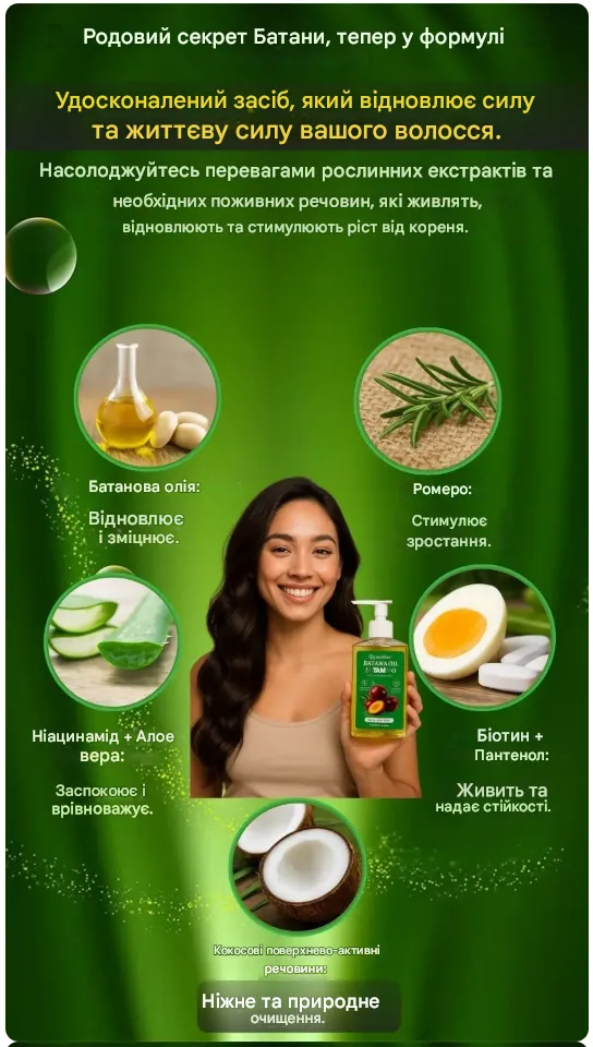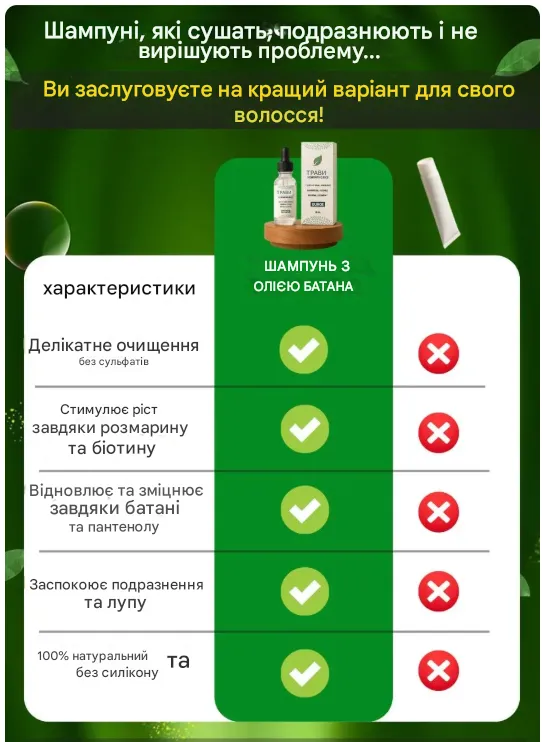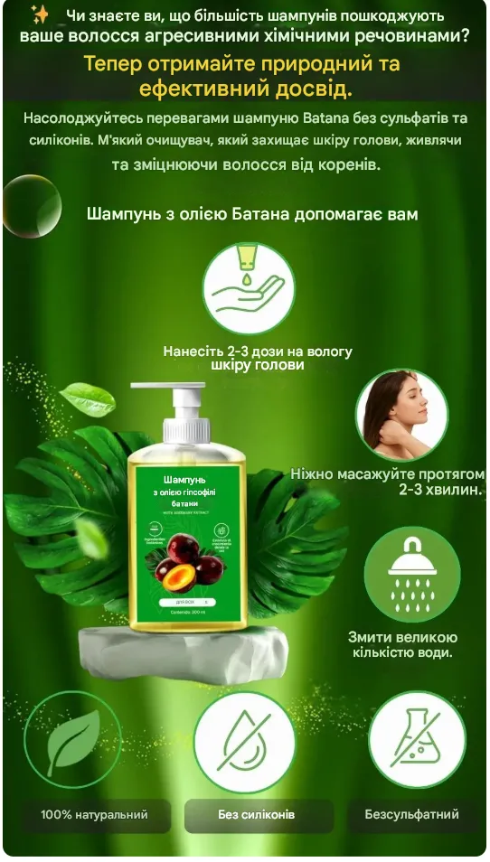 Останнє замовлення: 40 хв томуШампунь Batana Oil з екстрактом розмарину