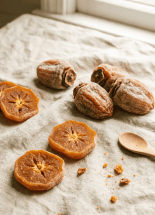 Сушена хурма має насичений солодкий смак і м’яку текстуру, що тане в роті, ідеально підходить для здорових перекусів